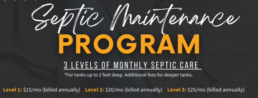 Each level of the program comes with additional benefits including pumping of the tank, discounts on septic repairs, the monthly additives, and more!